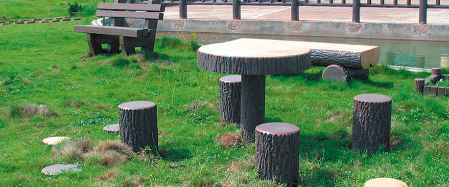 產品運用水泥、石子、砂子為主料、內部配有鋼筋骨架,結合其它復合材料、通過模具擠壓成型。產品具有紋理逼真、堅固耐用、免維護、不腐、不燃、不變形、使用壽命長等優點,是實木及石材產品的理想替代品,又因是模具成型,可根居客戶要求訂制符合當地人文景觀特點的產品。